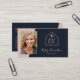 Elegante und berufliche echte Anwesen Agent Visitenkarte mit einem Foto. Modernes Realtor-Logo auf der Vorderseite mit Script-Schriftart in Rosa und Hintergrund in marineblau. QR-Code hinzufügen