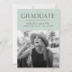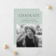 Feiern Sie mit diesen Ankündigungen für den Abschluss Ihres Fotos den aufregenden Meilenstein Ihres Absolventen! Das Design zeichnet sich durch "Graduate" an der Spitze der schwarzen modernen Schrift aus, mit einer minzfarbenen, abgerissenen Kante, die an das hohe Foto des Absolventen grenzt. Personalisieren Sie die Ankündigung, indem Sie den Namen des Absolventen, den Schulnamen und das Abschluss Jahr. Die Karte kehrt um, um einen grünen Hintergrund mit Minze anzuzeigen.
