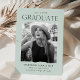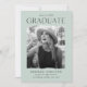 Feiern Sie mit diesen Ankündigungen für den Abschluss Ihres Fotos den aufregenden Meilenstein Ihres Absolventen! Das Design zeichnet sich durch den Abschluss Jahr an der Spitze aus, mit dem Graduate, das unten in schwarz-moderner Schrift gezeigt wird. Das Foto des Absolventen wird in einem minzgrünen Rahmen mit abgerissenen Kanten angezeigt. Personalisieren Sie die Ankündigung, indem Sie den Namen des Absolventen, den Namen der Schule und künftige Pläne (Uni, Militär, Karrierewahl, etc.). Die Karte kehrt sich um, um einen soliden, grün geprägten Hintergrund zu zeigen.