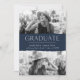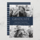 Feiern Sie mit diesen modernen Abschlussankündigungen den spannenden Meilenstein Ihres Absolventen! Die beiden Foto Abschluss Ankündigung zeigt "Graduate" im Mittelpunkt des Designs in weißen modernen Schriften und marinebasierten Hintergrund mit abgerissenen Kanten. Personalisieren Sie die Ankündigung, indem Sie den Namen des Absolventen, den Schulnamen und das Abschluss Jahr. Die Karte kehrt um, um ein texturiertes marinebonisches und weißes Streifen Muster anzuzeigen.