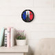 Moderner Eiffelturm, Paris, Französische Flagge / Runde Wanduhr