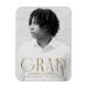Moderner Abschluss Magnet mit dem vertikalen Foto des Absolventen mit "Grad" in Deko-Stilschrift aus Messing/antiken Goldkunst. Personalisieren Sie die Magnete für das Foto des Abschlusses, indem Sie den Namen des Absolventen, den Namen der Schule und das Jahr des Abschlusses hinzufügen.
