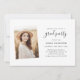 Laden Sie Ihre Freunde und Familie zu Ihrer Abschlussfeier mit dieser modernen eleganten 4 Foto Collage Script Abschluss Einladungskarte ein. Mit einem eleganten Schwarz-Weiß-Design und einer eleganten Kalligraphie-Schrift ist diese Einladung ideal für Absolventen der Highschool oder der Uni. Die doppelseitige Karte bietet Platz für vier Ihrer Lieblings-Abschluss-Fotos, was es zu einer einzigartigen und persönlichen Art macht, Ihre Lieben zur Feier Ihrer Errungenschaften einzuladen. Mit seinem minimalistischen und einfachen Stil wird diese Einladung sicher einen bleibenden Eindruck hinterlassen.