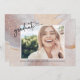 Moderne Elegante Abschluss Ankündigung. Diese stilvolle Script Foto Abschluss Ankündigung bietet einen wunderschönen abstrakten Aquarellhintergrund mit neutralen Erdtönen mit klassischem Rose Gold Glitzer vorne und hinten. Auf der Rückseite befindet sich auch eine Nachricht zum Personalisieren oder einfach zum Löschen verlassen. Matching-Elemente befinden sich in der Rose Gold Glitzer Abschluss Collection.