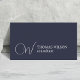 Elegante, anpassbare Visitenkartenvorlage mit dunkelblauem Hintergrund und weißem, fett formatiertem Monogramm. Modernes, einfaches und elegantes Design. Perfekt für Berater, Anwälte, Anwälte, Anwälte oder Finanzfachleute.