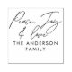 Moderne minimale stilvolle familienfreundliche Wohngestaltung elegante Drehbuch-Text Ruhe, Freude und Liebe Holiday Weihnachten selbst inking Briefmarke Design, Ideal Jubiläum.