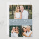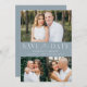 Elegantes Multi-Foto Save the Date mit "Save the Date" in weißer Schrift mit einem staubblauen Hintergrund. Personalisieren Sie die moderne QR Save the Date-Karte mit 3 Ihrer Lieblings-Fotos, Ihren Namen, Ihrem Hochzeitstag und Ihrem Hochzeitsort. Das staubige Blau kehrt Save the Date um, um Ihren benutzerdefinierten QR-Code mit Hochzeitswebsite und individuellem Text anzuzeigen.
