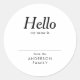 Diese schicken Wiedersehen-Aufkleber zeichnen sich durch ein zeitgenössisches, elegantes Design mit Ihrem eigenen Familiennamen in moderner Typografie aus. Die Aufkleber sagen "hallo" zusammen mit einer Zeile, in der jeder Familienmitglied seinen Namen schreiben kann. Die perfekte Dekoration für Ihre moderne Familienfeier.