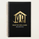 Moderner Handymann Business Planer / Terminkalender mit goldenen Werkzeugen in Form des Hauses auf schwarzem Hintergrund. Personalisieren Sie Ihren Namen, Titel und Ihre Kontaktdaten.