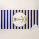 Moderner goldener Anker und Krone auf blau, goldgelb und weiß gestreiften Strand Handtuch.