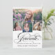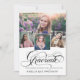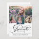 Eine moderne Abschluss-Einladung mit dem Wort "Graduierte" auf der Vorderseite in stilvoller Schrift-Kalligrafie, plus 4 Ihrer Lieblings-Senior-Fotos. Fügen Sie Ihre persönlichen Feierlichkeiten hinzu. Dies ist die schwarz-weiße Version.