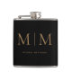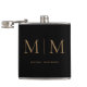 Moderne elegante Black Gold Mit Monogramm Erstklassige Personalisierte Namensflasche. Passen Sie diesen Kolben mit 2 Monogramm-Initialen und einem vollständig mit Monogramm Namen an. Perfektes Geschenk für Papa, ein Trauzeuge Geschenk, Weihnachtsgeschenke für Väter, ein Weihnachtsgeschenk für Großvater oder ein einmaliges Geschenk für den Freund.