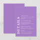 Moderne elegante Hochzeitsdetails Lavender Simple Enclosure Card. Anzeigen passender Produkte aus dieser Sammlung.