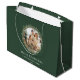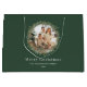 Weihnachtsgeschenktasche mit elegantem Aussehen mit dem Aquarellkranz mit Familienfoto-Vorlage im sagengrünen Hintergrund kann Fotos hinzufügen , kann die Hintergrundfarbe, den Schriftart und die Farbe nach Ihren Wünschen ändern.