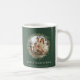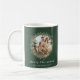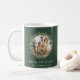 Chrismas Kaffee Tasse mit elegantem Aussehen mit dem Aquarellkranz mit Familienfoto-Vorlage im sagengrünen Hintergrund kann Familie Fotos hinzufügen , kann die Hintergrundfarbe, den Schriftart-Typ und die Farbe nach Ihren Wünschen ändern.