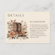 Genießen Sie Ihre Hochzeitsarbeit mit den eleganten zweiseitigen Detailkarten, die Ihr modernes Western-Thema ergänzen. Mit bestickten neutralen Blume und charmanten Cowboystiefeln verbinden sie rustikalen Charme mit zeitloser Eleganz. Auf der einen Seite finden Sie wichtige Informationen zum Empfang, damit Sie wissen, wo Sie Ihren besonderen Tag feiern können, auf der anderen Seite finden Sie Informationen zu den Unterkünften für ein nahtloses und stressfreies Erlebnis. Diese auf hochwertigen texturierten Cardstock gedruckten Karten behielt Ihre Gäste stilvoll auf dem Laufenden.