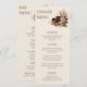 Genießen Sie Ihren Hochzeitsempfang mit den eleganten, zweiseitigen Menükarten, die Ihr modernes Western-Thema ergänzen. Mit bestickten neutralen Blume und einem charmanten Cowboy-Hutmotiv verbinden sie rustikalen Charme mit zeitloser Eleganz. Auf der einen Seite wird ein sorgfältig kuratiertes Abendmenü präsentiert, auf der anderen die Bar, die den Gästen jeden Teil des Festes garantiert. Auf hochwertigen texturierten Cardstock gedruckt, fügen diese Menüs Ihrem besonderen Tag eine stilvolle und polierte Touch hinzu.