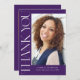 Lila Modern Elegant Vertical Two Foto Abschluss Dankeschön Sie Card bietet eine lustige und moderne Art, zusammen mit Ihrem Abschluss Foto. Fügen Sie Ihre Dankeschön auf der Rückseite hinzu, oder verlass leer für eine handgeschriebene Nachricht.