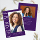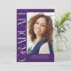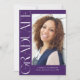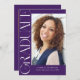 Lila Modern Elegant Vertikal Zwei Foto Abschluss Einladungen bietet eine unterhaltsame und moderne Art, zusammen mit Ihrem Abschluss Foto. Fügen Sie Ihr Party hinzu oder öffnen Sie die Hausdetails auf der Rückseite.