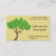 Ein moderner, hell farbiger Visitenkarteentwurf passend für ein Baumtrimmer- oder Baumzüchter- oder Baumzutatgeschäft. Diese stilvolle Karte hat eine Illustration eines großen Baums gegen einen Sommergelbhintergrund. Der Text ist völlig kundengerecht, Ihre eigenen persönlichen Details zu umfassen. Die Hintergrundfarbe kann auch geändert werden.