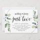 Moderne Rustikale Grüne Eukalyptus, Schwarz-Script-Einladungskarte (mit Kartentitel: Nichts extravagant, nur Liebe). Es ist perfekt für Ihren Hochzeitsfeier Empfang / Post Hochzeitsfeier Party. Fügen Sie Ihre Daten in passender schwarzer Schriftart / Schrift hinzu. #TeeshaDerrick