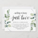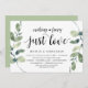 Moderne Rustikale Grüne Eukalyptus, Schwarz-Script-Einladungskarte (mit Kartentitel: Nichts extravagant, nur Liebe). Es ist perfekt für Ihren Hochzeitsfeier Empfang / Post Hochzeitsfeier Party. Fügen Sie Ihre Daten in passender schwarzer Schriftart / Schrift hinzu. #TeeshaDerrick