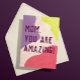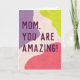 Sagen Sie Ihrer Mutter, sie ist eine phantastische Frau mit kühlem Text auf einem modernen Hintergrund mit trendigen Farbklappen in Korallenrosa, Lavendel lila und helles Zitronengelb auf einem strukturierten Hintergrund von rot rosa. Der gesamte Text kann für eine ganz eigene Muttertagskarte bearbeitet werden.