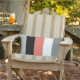 Modernes, farbenfroh gestreiftes Kissen im Freien Lumbalkissen in Korallen, dunkelgrau und hellgrau, schwarz und weiß.
