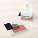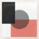 Dieses moderne geometrische Design zeichnet sich durch große rechteckige, korallenförmige, schwarz-weiße Farbblöcke aus, die durch einen schwarz gestreiften Kreis ergänzt werden.