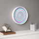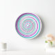 Diese rund um die Uhr ohne Zahlen zeichnet sich durch ein abstraktes Spiraldesign in 3 Farben aus: weiß, lila und aquamarin.