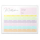 Mit diesem personalisiert pastellfarbenen Monatsplaner-Notizblock können Sie eine Übersicht über alle wichtigen Aufgaben für den Monat behalten werden. Das Design besteht aus einem monatlichen Kalender, in dem Sie den Monat, das Jahr und das Datum in das entsprechende Leerfeld eingeben können. Der Text ist vollständig anpassbar.