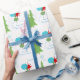 Wickeln Sie spezielle Geschenke mit hellem und heitrem personalisiertem Papier ein. Rot, Aqua und grüne moderne Feiertagsentwürfe beglückwünschen die kundengebundene Textschablone. Ursprüngliche vektorkunst durch die Menagerie der Nachteule, 2013.