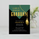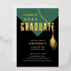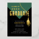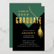 Moderne & kühne Klasse der 2022 Graduierungsparty Einladung mit einem grünen Graduierdeckel mit goldfarbenem Lila-Set auf schwarzem Hintergrund. Besuchen Sie unseren Shop, um dieses Design in einer Vielzahl von Schulfarben zu sehen.