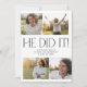 Diese moderne Fete, die er machte es Foto Collage Abschluss Ankündigung Karte ist die perfekte einfache High School oder Uni grad Ankündigung. Das Design besticht durch eine elegante boho Typografie mit einer Touch von elegantem Stil in minimalistischem Schwarz-Weiß. Personalisieren Sie die Vorderseite der Karte mit 4 Fotos, Ihrem Absolventen-Namen, Schule und Klasse Jahr.