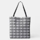 Moderne Printttasche aus stilisierten Fischen, abwechselnd positiver und negativer Raum - Mixed-Media-Grafik in den Schattierungen von leicht bis tief grau / grau und weiß, mit schwarzer Akzent