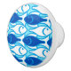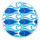 Mitte des Jahrhunderts Modernes Design von stilisierten Fischen, abwechselnd positiver und negativer Raum - Mixed Media Grafik in Kobalt Blau und Weiß, Akzent mit Himmelblau und Aqua
