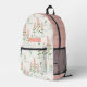Dieser moderne Blumenbackpack besticht durch wunderschöne handgezeichnet, skurrile pfirsichfarbene Blume mit einem passenden pfirsichgeometrischen Muster. Leicht personalisiert mit einem Namen für eine stilvolle und maßgeschneiderte Touch.