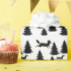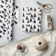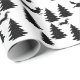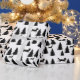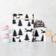 Minimalistische europäische Folktale skandinavische schwarze Weihnachtsbaumstruktur Muster Design, mit laufenden Mond Fuchs und laufende Mond Kaninchen Hase. Skandinavischer Yuletide Weihnachten skandinavische illustrierte Muster. Skandinavisches Weihnachtsverpackungspapier.