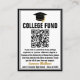 Diese moderne, in Schwarz und Gold gehaltene Uni Fondskarte bietet einen QR-Link auf der Website, mit dem Sie sich an den Universitätskosten Ihres Absolventen beteiligen können. Passen Sie Ihre Nachricht, den Schulnamen und das Jahr an.