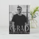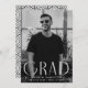Einfache Ankündigung des Abschlusses mit dem senkrechten Foto des Absolventen mit "Grad" in weißem, modernem Deko-Schrift dargestellt. Personalisieren Sie die Front der Ankündigung des Single Foto Abschluss durch Hinzufügen des Graduiertennamens, Schule und Grade Jahr. Die Ankündigung kehrt sich um, um ein Schwarz-Weiß-geometrisches wirl-Design anzuzeigen.
