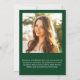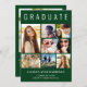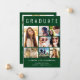 Moderne grüne Abschluss-Ankündigung, die "GRADUATE" über die Spitze in großen weißen Typografie, eine 7-Foto-Collage und seinen Namen, Klassenjahr und Schule in der modernen weißen Typografie. Fügen Sie auf der Rückseite ein zusätzliches Foto und eine benutzerdefinierte Meldung hinzu.