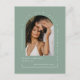 Diese Save the Date/rettete unserer Datums-Ankündigung Einladung Postcard weist einen eleganten, modernen minimalistischen Stil mit einem sauberen und einfachen Block Serif-Typografie-Schriftart in einer Bogenform um das Foto auf einem schlinggrünen Hintergrund auf. Die Einfachheit dieses Designs fügt eine Touch von Eleganz zu Ihrer Hochzeit speichern Sie die Datum Einladungskarten. Es funktioniert mit vielen Hochzeitsthemen und ist definitiv eine großartige Ergänzung zu Ihrer Hochzeit. Einfach Namen und Formulierungen in ein paar einfachen Schritten anpassen und die Postkarte mit Ihrem Foto des glücklichen Paares personalisieren und den QR Code durch Ihren auf der Rückseite ersetzen, um Ihrer Postkarte eine angenehme persönliche Touch zu geben. Bitte beachten Sie: Die Formulierung "rett unser Datum" und die Zeilen und Grafiken können nicht bearbeitet, gelöscht, verschoben oder geändert werden. Sie sind repariert.