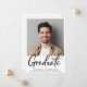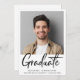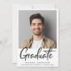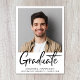 Moderne Ankündigung des Abschlusses mit dem Foto des Absolventen und "Graduate" in einer zeitgenössischen fett geschrieben. Fügen Sie ihren Namen, das Klassenjahr und die Schule in einfacher Typografie hinzu.