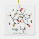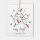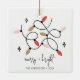 Weihnachtsschmuck mit den Worten "Merry and Bright" mit Weihnachtsbeleuchtung. Personalisieren Sie den benutzerdefinierten Text oben. Sie können auch die Hintergrundfarbe ändern. Weitere Koordinationsgegenstände finden Sie in unserer Kollektion "A Modern Illustriert Holiday".