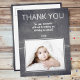 Niedlicher, moderner Geburtstag danke Ihnen postcard, um Ihren Gästen zu danken. Einfach Dankeschön für Kinder - Mädchen und Junge, besonders für den 1. und 2. Geburtstag. Personalisieren Sie die Karte mit Ihrem Foto und Namen. Sie können auch den Dankeschön Text ändern und schreiben Sie Ihre eigenen. Der Text ist in trendiger und moderner weißer Farbe. Der Hintergrund ist die trendige graue Tafel.
