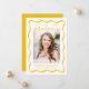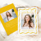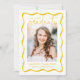 Teilen Sie Ihre Errungenschaft mit dieser Ankündigung des Abschlusses "Modern Yellow Wavy Frame", der eine kühne Aussage machen soll. Die Vorderseite weist ein Foto mit vertikaler Graduierung auf, das durch eine gelbe, waagerechte Grenze auf weißem Hintergrund gerahmt ist. "Graduate" ist elegant in einem handgeschriebenen gelben Drehbuch geschrieben. Personalisieren Sie es mit Ihrem Namen, Abschluss Jahr und Schule für eine einzigartige und stilvolle Touch. Die Rückseite zeigt ein horizontales Foto mit Platz für eine benutzerdefinierte Nachricht, ideal, um Ihre Dankbarkeit oder zukünftige Pläne zu teilen. Dieses lebendige und moderne Design eignet sich ideal für Absolventen der Highschool und der Uni und ist ein idealer Ort für Familien und Freunde.
