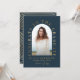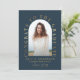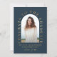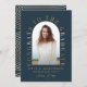 Moderne geometrische Typografie elegante Marineblau und Goldeffekt Foto Bogen Abschluss Anzeigenkarte.