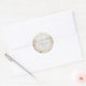 "Moderner geometrischer floraler Glitzer Save the Date klassischer Rundaufkleber." Elegante Save the Date, Schriftzeichen, die Namen der Ehepaare und das Hochzeitsdatum über einen modernen, schlichten goldfarbenen Glitzer, geometrisch kreisrunder Velum-Rahmen über einem romantischen, kaum blütig rosa orchitischen Hintergrund. Grafisch entworfen von Audrey Jeanne Roberts, international lizenzierter Künstlerin und Designer, Copyright.