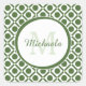 Moderner geometrischer Mit Monogramm Name Grün und Quadratischer Aufkleber