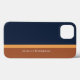 Eleganter und moderner individuelle Name-Handy gestreift mit vertikalen Farbblöcken in Marineblau, goldbraun und Bronze.